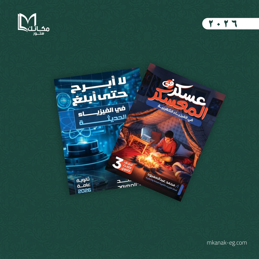 ١- كتاب المعسكر على ٤ فصول الكهربية ويحتوي على أكثر من ۷۰۰ سؤال على الكهربية شاملة لجميع المستويات واسئلة امتحانات مصر وازهر ونماذج الوزارة..